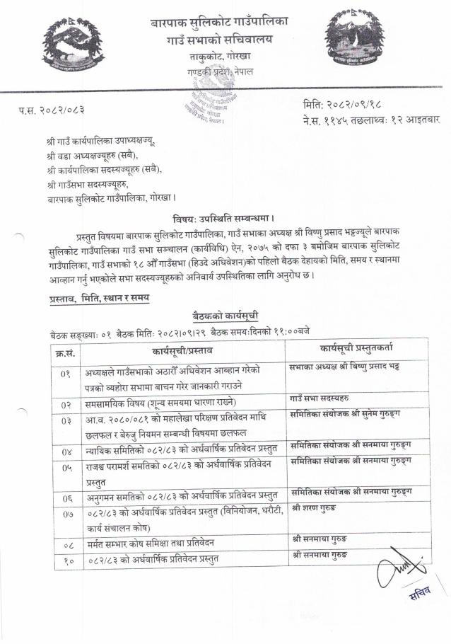 गाउँ सभाको १८ औँ अधिवेशन आब्हान गरिएको ।