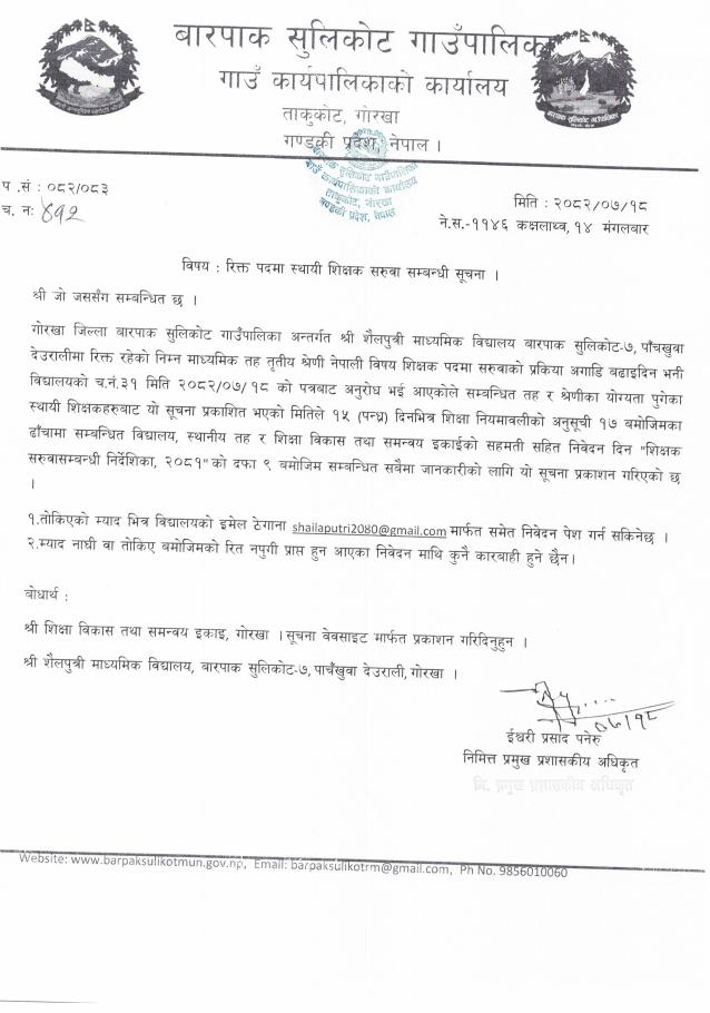 रिक्त पदमा स्थायी शिक्षक सरुवा सम्बन्धी सूचना ।।