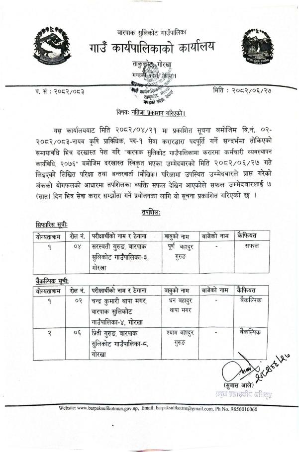 Home » अन्तिम नतिजा प्रकाशन गरिएको सम्बन्धी सूचना ।।
