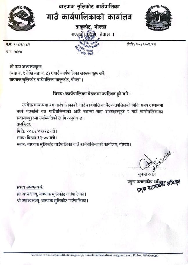 कार्यपालिका बैठकमा उपस्थित हुने बारे ।