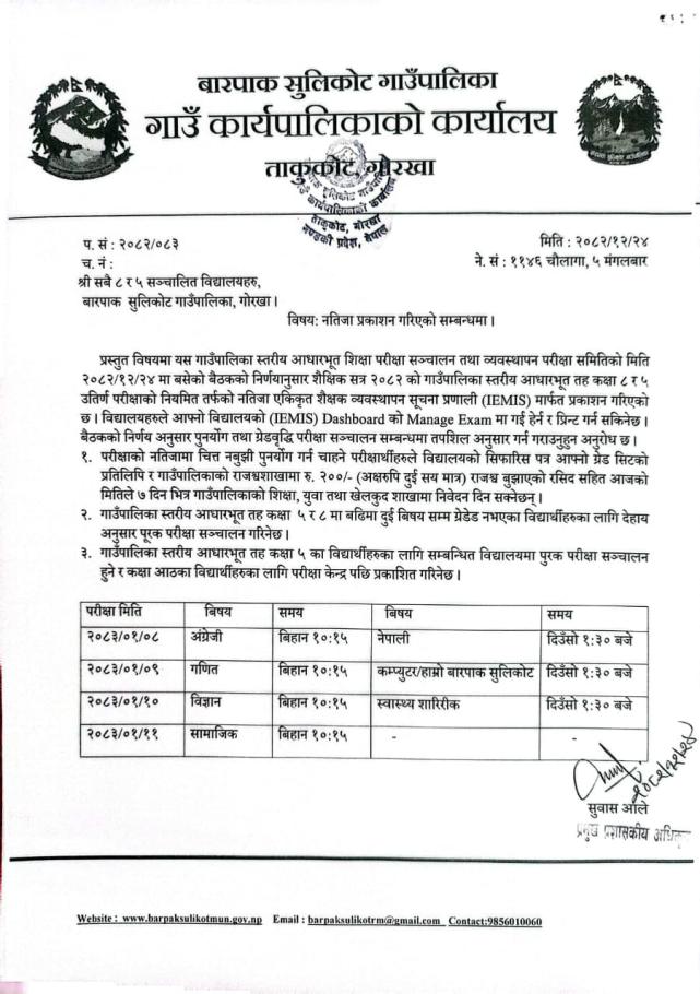 नतिजा प्रकाशन गरिएको सम्बन्धमा ।।