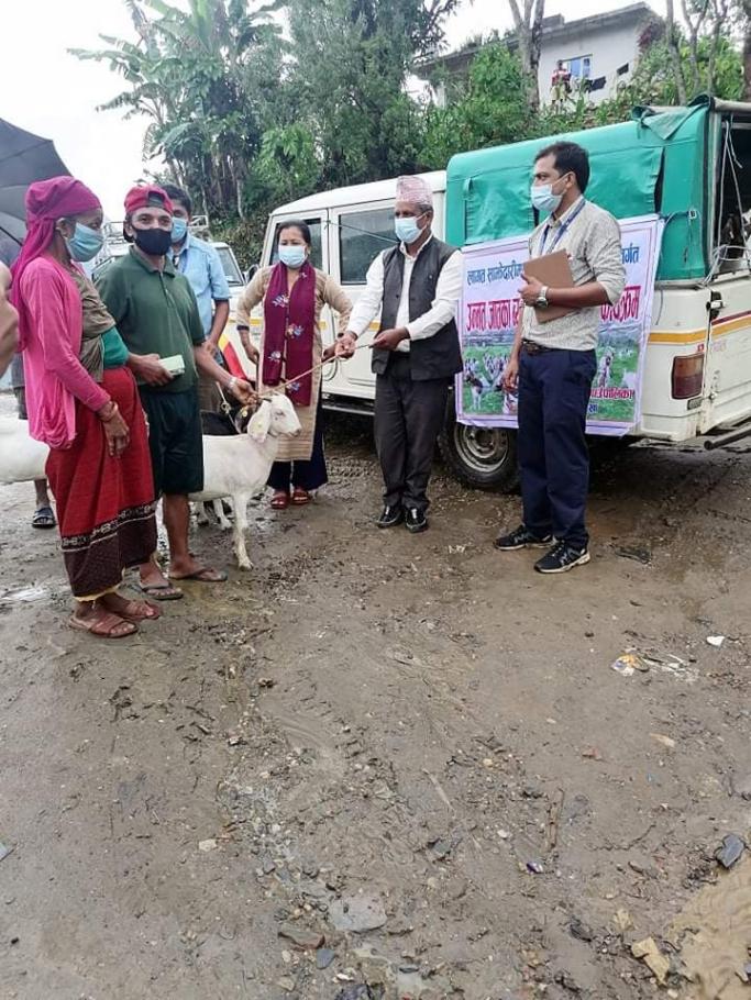 बारपाक सुलिकोट गाउँपालिका भित्रका वडामा उन्नत जातको बोयर क्रस बोका पाठि तथा आवश्यक औषधि वितरण