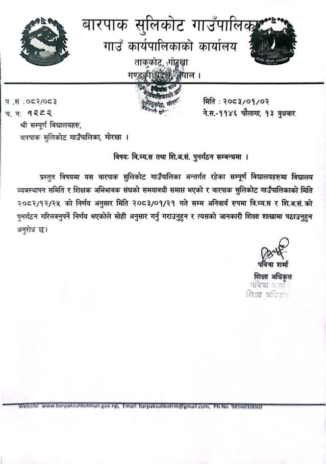 Home » वि.व्य.स तथा शि.अ. सं पुनर्गठन गर्ने बारे ।।