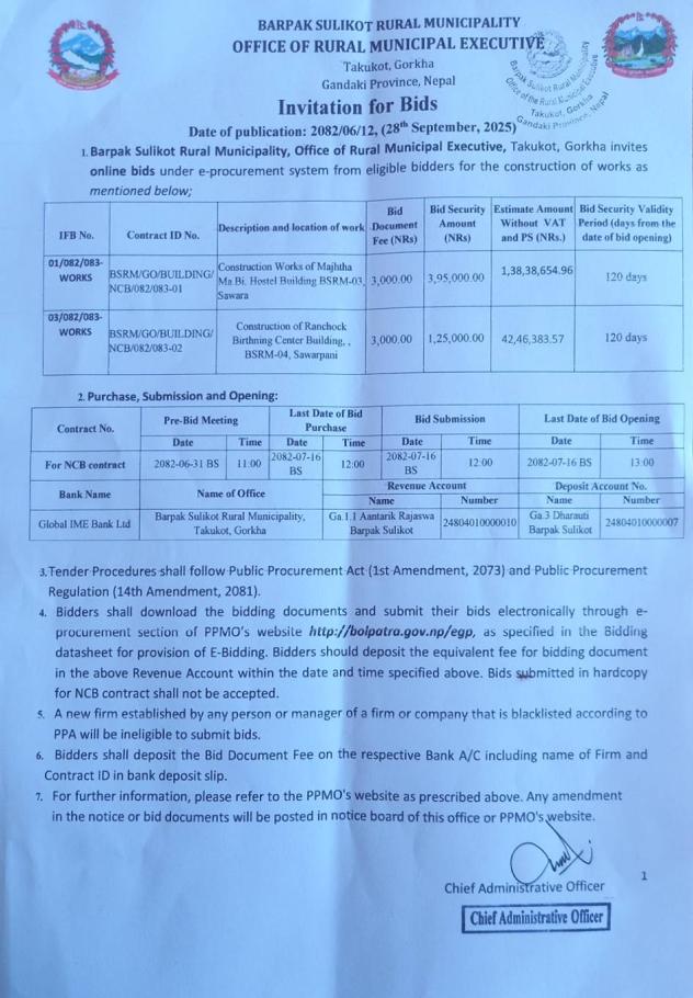 सार्वजनिक खरिद/बोलपत्र सूचना