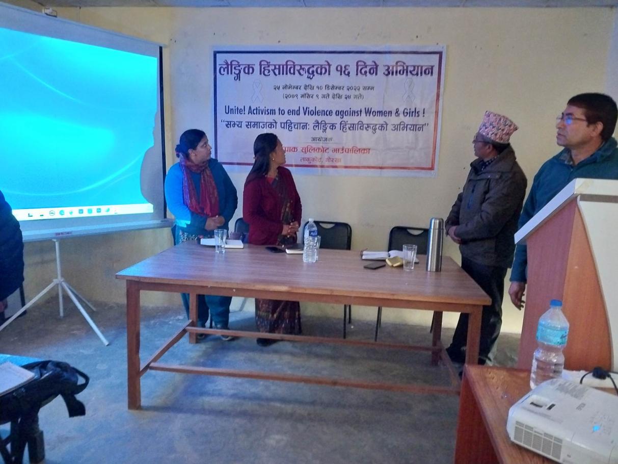 Home » लैङ्गिक हिंसाविरुद्धको १६ दिने अभियानको अवसरमा आयोजित कार्यक्रमको केही झलकहरु